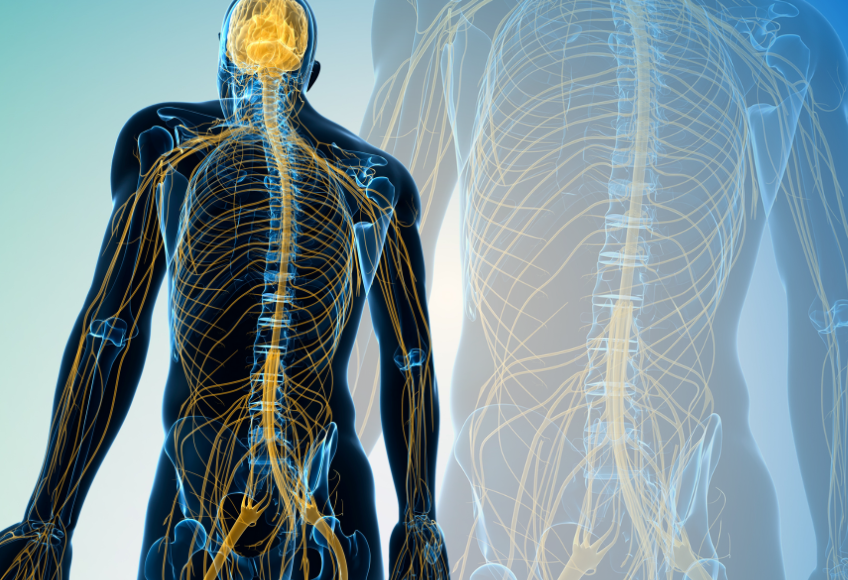 Der Sympathikus hingegen übernimmt die Kontrolle, wenn der Körper unter Stress steht und mehr leisten muss. Diese beiden Systeme arbeiten zusammen und balancieren sich aus, um unsere Organe zu steuern. Die sympathischen Nervenzellen befinden sich im Brust- und Lendenbereich des Rückenmarks. Höhere Zentren des Sympathikus, wie der Hypothalamus und der Hirnstamm senden Signale an diese sympathischen Nervenzellen im Rückenmark. Diese Nervenzellen liegen im Seitenhorn des Rückenmarks. Sie senden ihre Fasern zu Nervenzellgruppen neben der Wirbelsäule, die miteinander verbunden sind und zusammen den sympathischen Grenzstrang (Truncus sympathicus) bilden. Dieser erstreckt sich auch bis in den Halsbereich (dort als Halssympathikus bezeichnet) und das Kreuzbein.