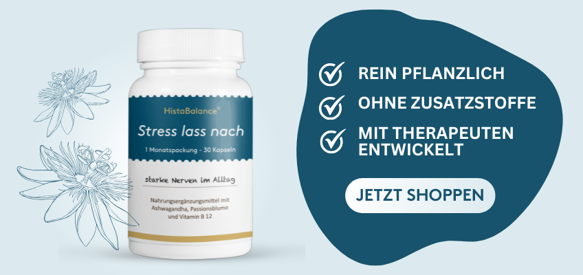 Nicht nur eine allgemein ausgewogene Ernährung ist hier gemeint. Besonders mit Intoleranzen, egal welcher Art, solltest du versuchen, unnötige Trigger aus der Nahrung zu vermeiden. Achte darauf, dass du ausreichend stilles Wasser über den Tag verteilt trinkst. Außerdem bieten sich (histaminarme) Kräutertees an. Nicht nur das Ritual des Tee Trinkens kann eine beruhigende Wirkung haben, auch ausgewählte Teezutaten wie beispielsweise Passionsblume wirken entspannend auf das Nervensystem. Wenn du dich gestresst fühlst, empfehlen wir dir außerdem unsere Stress-Lass-Nach Kapseln.