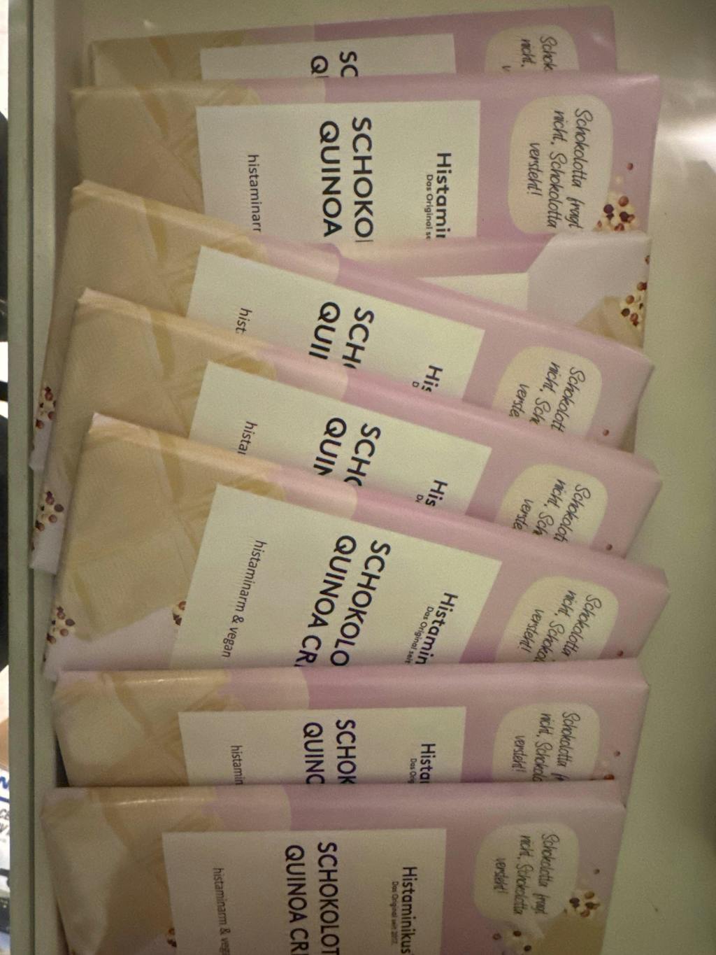 Ich habe 6(!) Schokoletta bestellt deren Verfallsdatum keine sechs Wochen haben , sehr traurig da ich jetzt gezwungen bin kurzfristig alle zu essen . Leider reagiere ich allergisch und bekomme einen angeschwollenen Mund und Hals . Geschmacklich sonst super